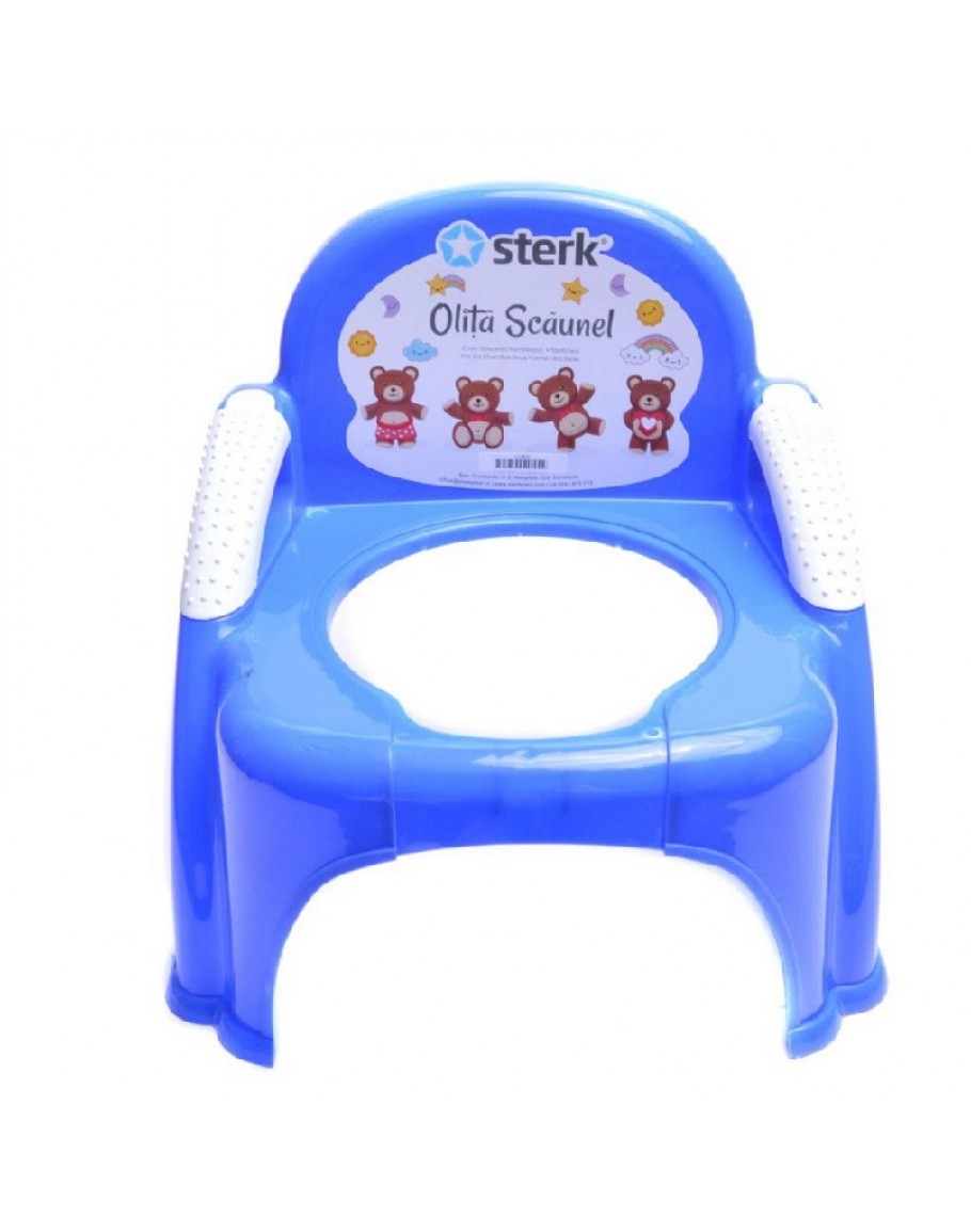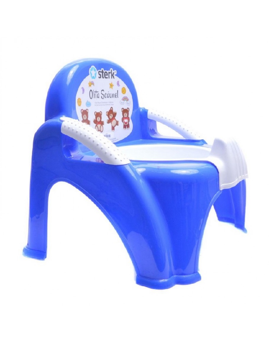 Бебешко гърне под формата на столче, изработено от PVC материал. Изключително леко и лесно за почистване.Предлага се в червено и синьо.Размери: 30х32х27 см.