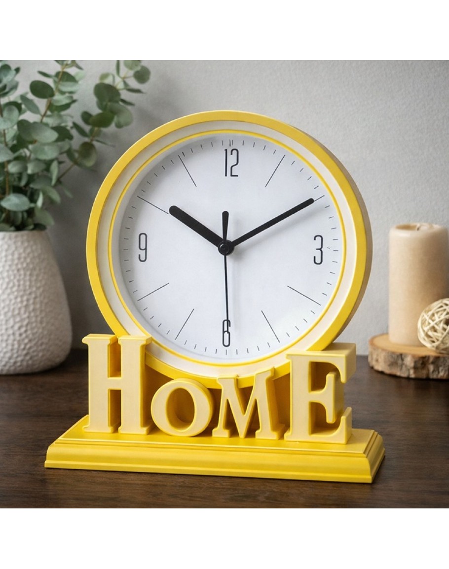 Настолен часовник Home с модерен дизайн и релефни букви, който съчетава практичност и естетика. Големият циферблат с ясно видими цифри осигурява лесно разчитане, а декоративната основа с надпис Home придава уют и завършен вид на всяко помещение.