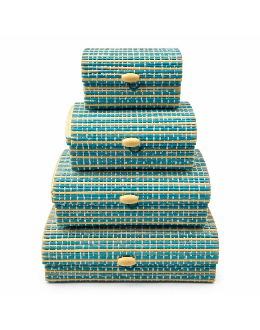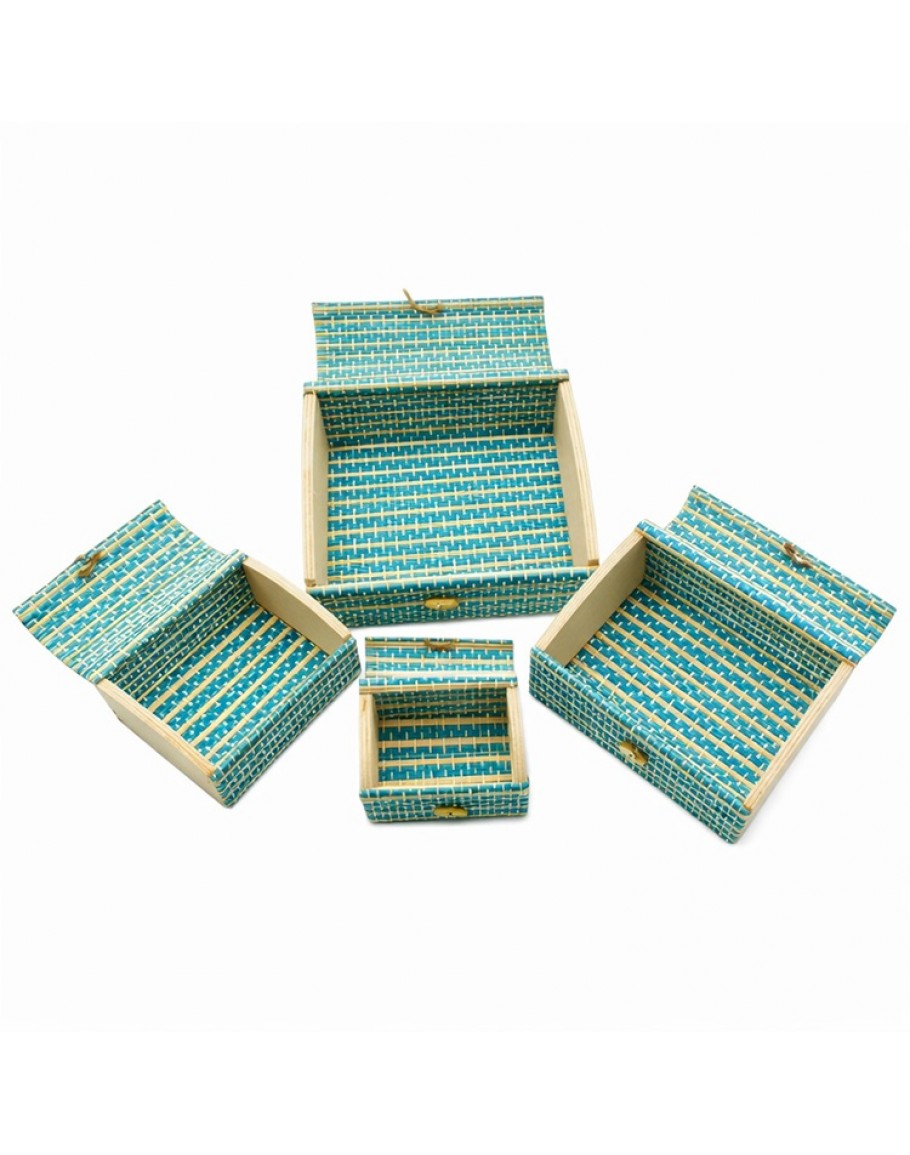 Този комплект от 4 бамбукови кутии съчетава естествена визия, функционалност и удобство. Подходящи са за съхранение на бижута, аксесоари, малки предмети или като декоративен акцент в дома.