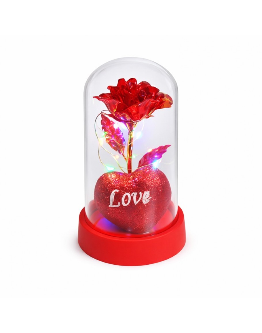 Светеща червена роза под купол – романтичен подарък